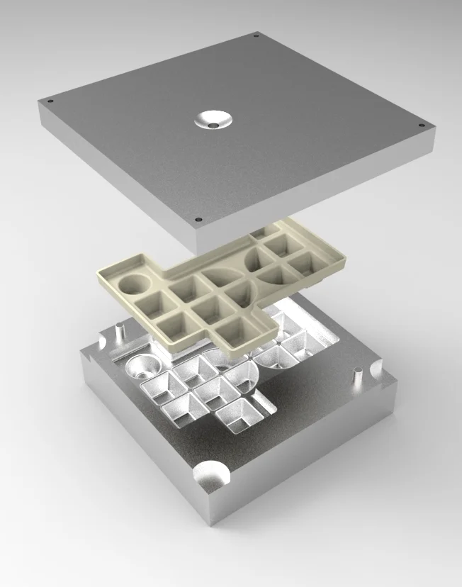 Mold was a project for IPD 501, a course in advanced modeling and manufacturing, meant to teach students the basics of modeling for injection molding. The class was split into teams of two for both parts (urethane casting and injection molding) parts of this project. For the injection molding portion of the project, we decided to create a chocolate mold. The aluminum parts were designed with draft of at least 3 degrees , checked with draft analysis, and machined using tapered end mills. Flow analysis was done to check for any trouble spots, and then the injection molder was calibrated over many shots.